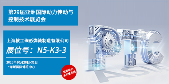 上海核工碟形彈簧制造有限公司,將于2025年10月28日至31日亮相上海新國際博覽中心舉辦的"2025亞洲國際動力傳動與控制技術(shù)展覽會(PTC ASIA 2025)"。公司將在展會期間整體展示其高性能碟形彈簧系列產(chǎn)品及創(chuàng)新解決方案,為動力傳動領(lǐng)域提供關(guān)鍵基礎(chǔ)件支持。